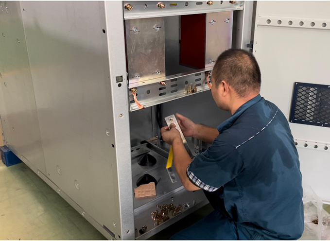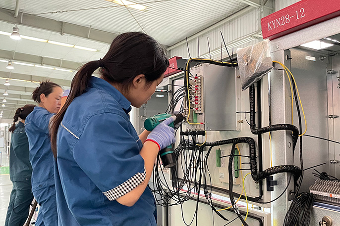 比賽開始,生產車間瞬間變身“比武場”,一場技術與速度的較量火熱上演。機裝班、線裝班、老人組、新人組同臺競技,各展所長。參賽選手們在規定的時間內,按照工藝流程緊張比拼,折彎布線力求精準,機裝操作有條不紊。橫平豎直的線路、嫻熟利落的動作,充分展示了參賽選手扎實的技能功底,每個人都攥著一股勁,力爭速度第一、質量最佳、工藝最優。